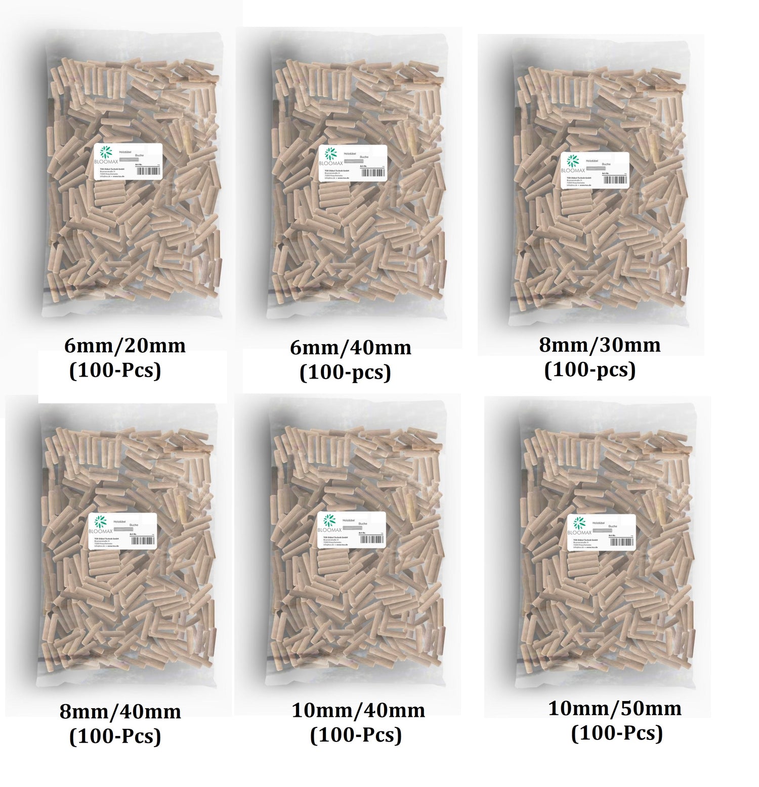 Wooden Dowel Pin All in One Pack (All Size In One Pack 6mm-20/40mm, 8mm-30/40mm, 10mm-40/50mm) 600 pieces of different sizes